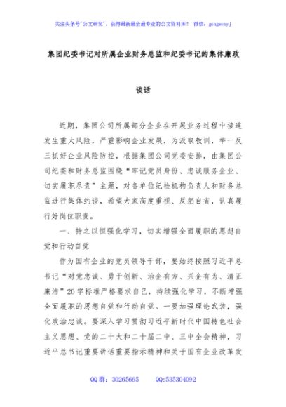 / 集团纪委书记对所属企业财务总监和纪委书记的集体廉政谈话