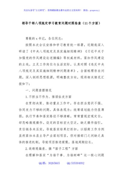 / 领导干部八项规定学习教育问题对照检查(11个方面)
