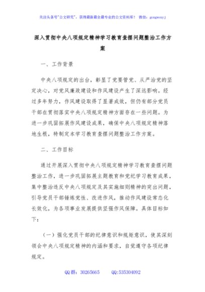 / 深入贯彻中央八项规定精神学习教育查摆问题整治工作方案