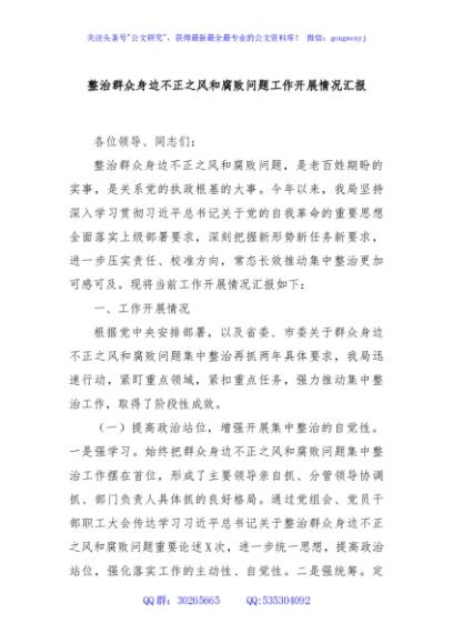 / 整治群众身边不正之风和腐败问题工作开展情况汇报
