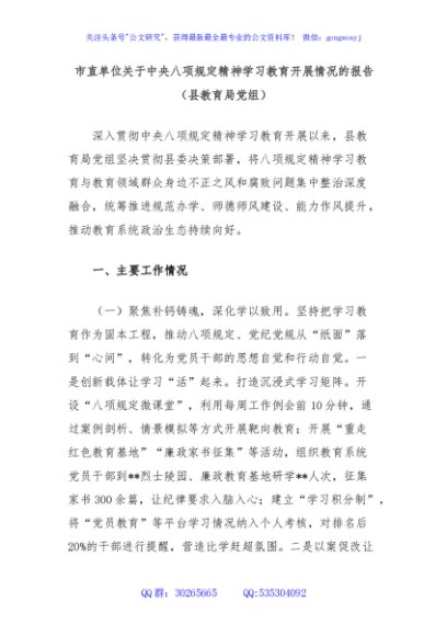 / 市直单位关于中央八项规定精神学习教育开展情况的报告(县教育局党组)