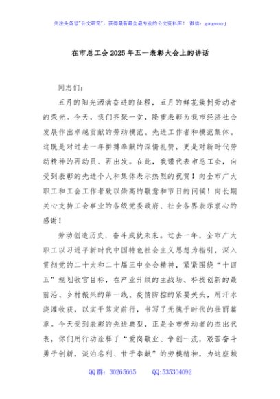 / 在市总工会2025年五一表彰大会上的讲话