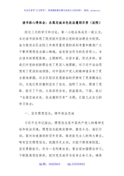 / 读书班心得体会:永葆忠诚本色依法履职尽责(法院)