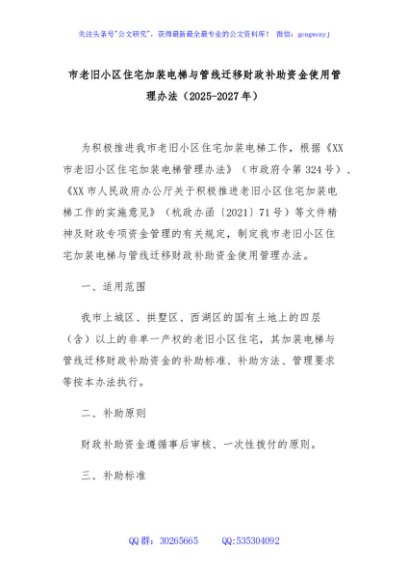 / 市老旧小区住宅加装电梯与管线迁移财政补助资金使用管理办法(2025-2027年)
