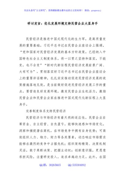 / 研讨发言:优化发展环境支持民营企业大显身手