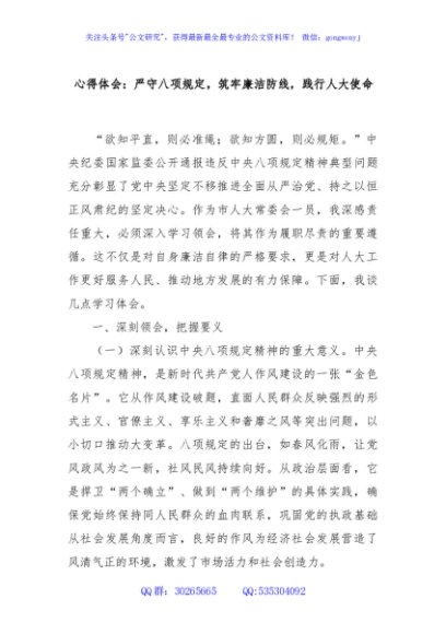/ 心得体会:严守八项规定,筑牢廉洁防线,践行人大使命