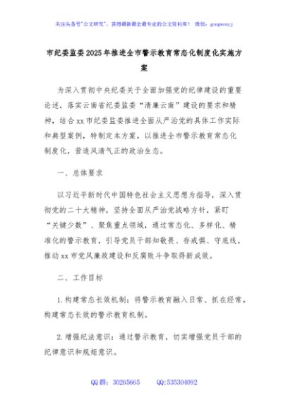 / 市纪委监委2025年推进全市警示教育常态化制度化实施方案