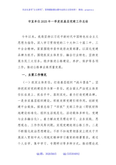 / 市直单位2025年一季度抓基层党建工作总结