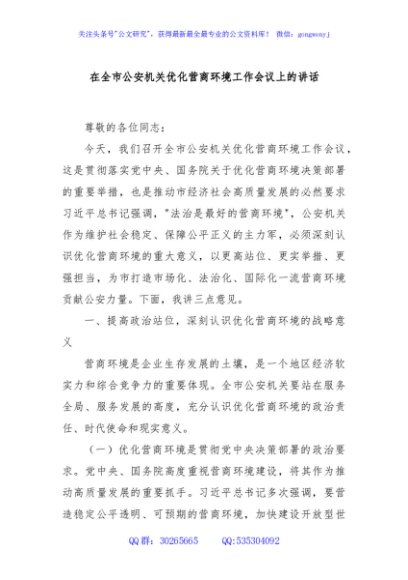 / 在全市公安机关优化营商环境工作会议上的讲话