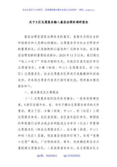 / 关于X区志愿服务融入基层治理的调研报告