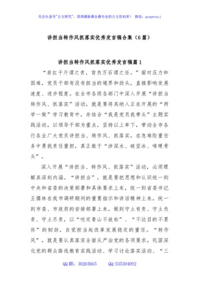 / (6篇)讲担当转作风抓落实优秀发言稿合集