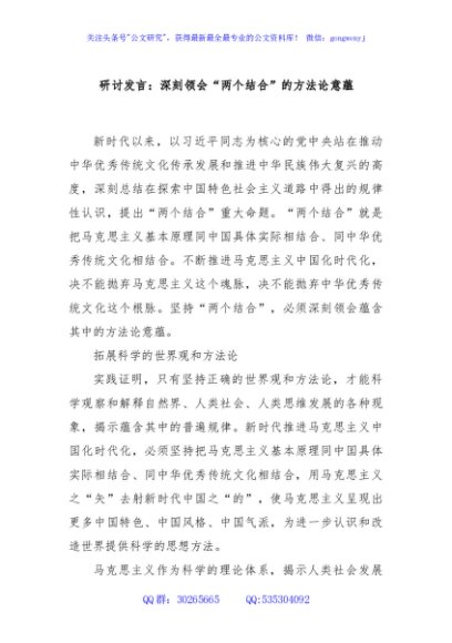 / 研讨发言:深刻领会“两个结合”的方法论意蕴