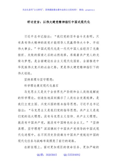 / 研讨发言:以伟大建党精神指引中国式现代化