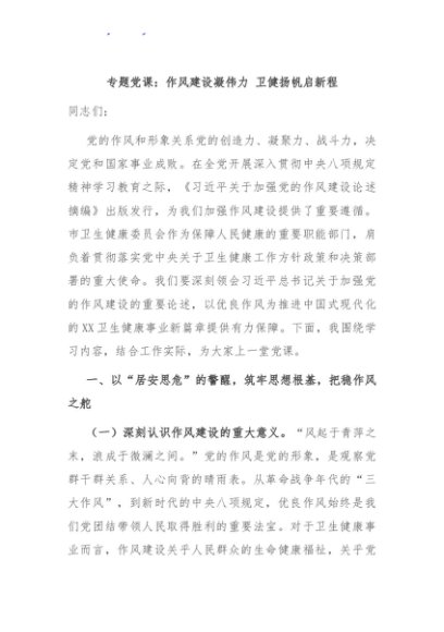 专题党课:作风建设凝伟力 卫健扬帆启新程