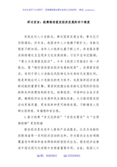 / 研讨发言:统筹推进银发经济发展的四个维度