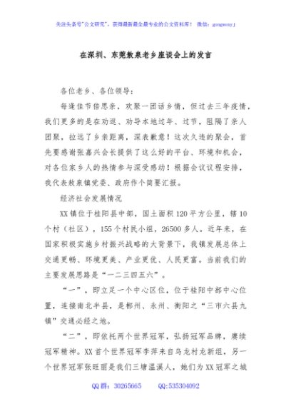 / 在深圳、东莞敖泉老乡座谈会上的发言