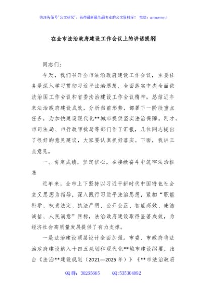 / 在全市法治政府建设工作会议上的讲话提纲