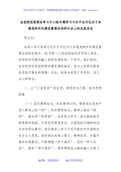 / 在医院党委理论学习中心组专题学习习近平总书记关于加强党的作风建设重要论述研讨会上的交流发言