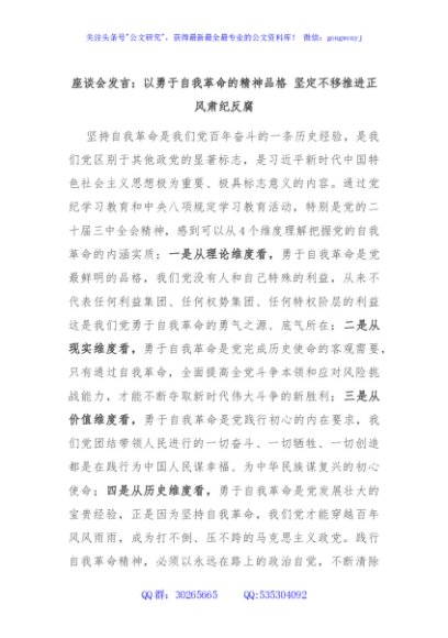 座谈会发言:以勇于自我革命的精神品格 坚定不移推进正风肃纪反腐