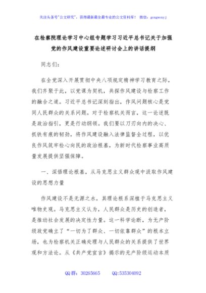 / 在检察院理论学习中心组专题学习习近平总书记关于加强党的作风建设重要论述研讨会上的讲话提纲