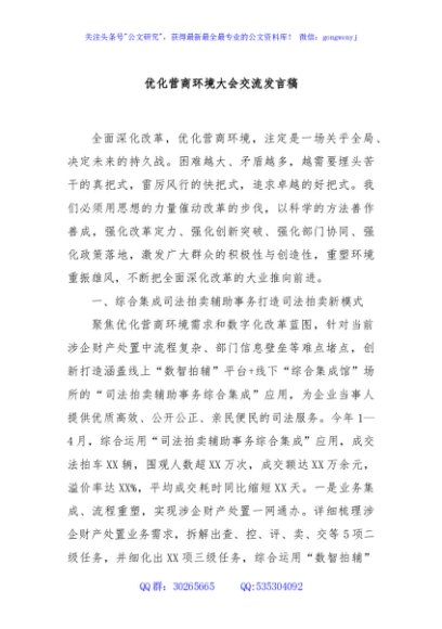 / 优化营商环境大会交流发言稿