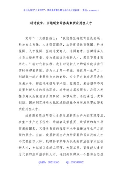 / 研讨发言:因地制宜培养高素质应用型人才