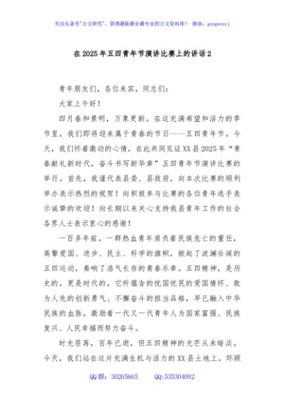 / 在2025年五四青年节演讲比赛上的讲话2