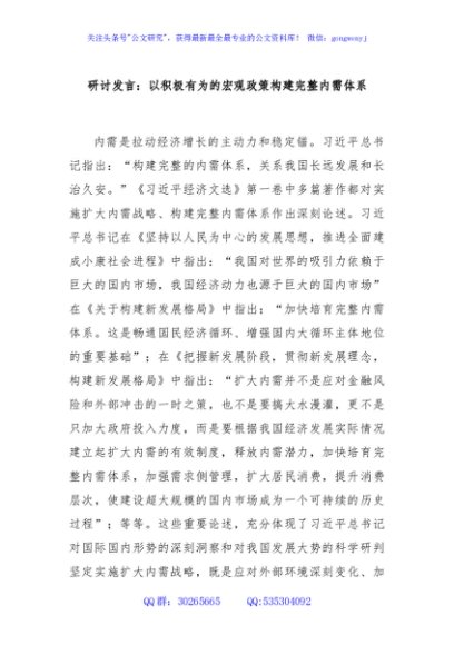 / 研讨发言:以积极有为的宏观政策构建完整内需体系