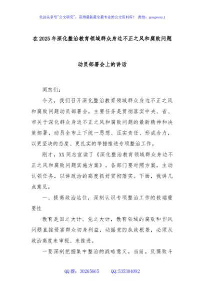 / 在2025年深化整治教育领域群众身边不正之风和腐败问题动员部署会上的讲话