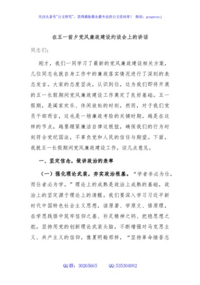 / 在五一前夕党风廉政建设约谈会上的讲话