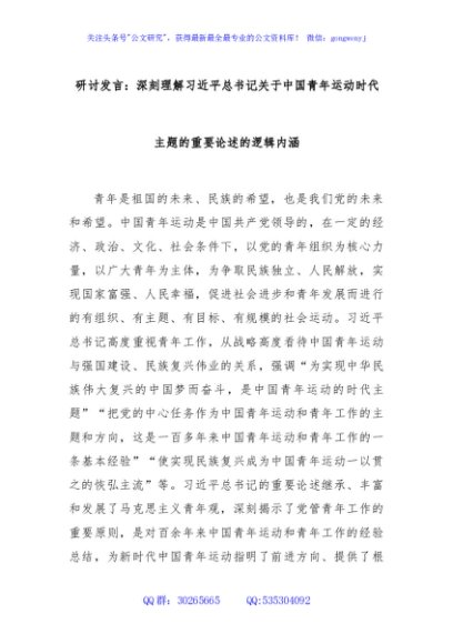 / 研讨发言:深刻理解习近平总书记关于中国青年运动时代主题的重要论述的逻辑内涵