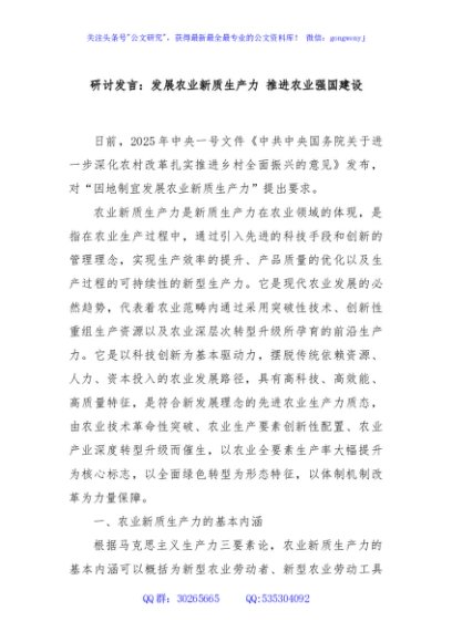 / 研讨发言:发展农业新质生产力 推进农业强国建设