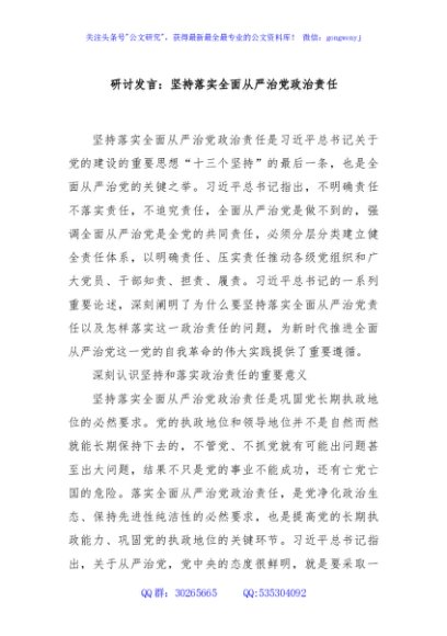 / 研讨发言:坚持落实全面从严治党政治责任