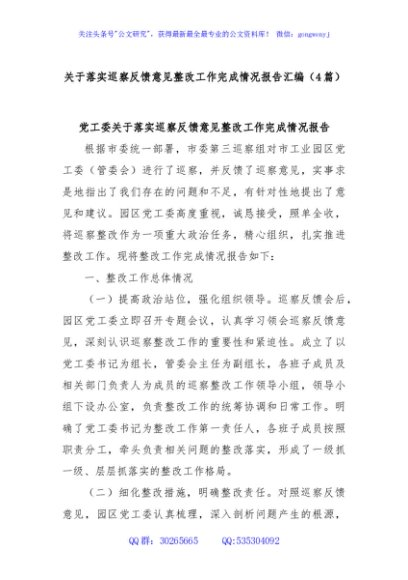 / (4篇)关于落实巡察反馈意见整改工作完成情况报告汇编