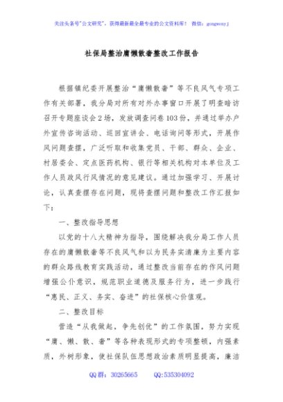 / 社保局整治庸懒散奢整改工作报告