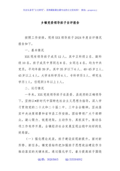 / 乡镇党委领导班子自评报告
