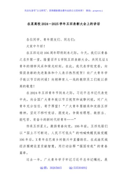 / 在某高校2024-2025学年五四表彰大会上的讲话