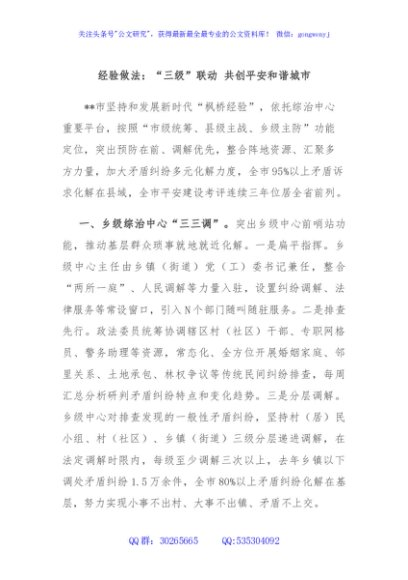 / 经验做法:“三级”联动 共创平安和谐城市