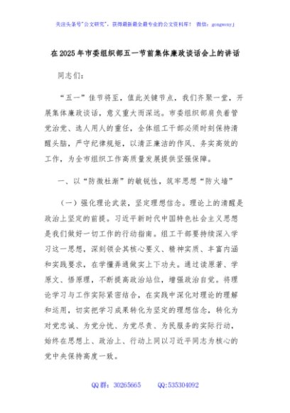 / 在2025年市委组织部五一节前集体廉政谈话会上的讲话