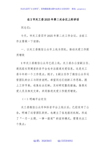 / 在X市关工委2025年第二次会议上的讲话