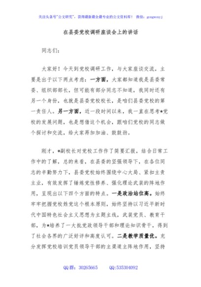/ 在县委党校调研座谈会上的讲话