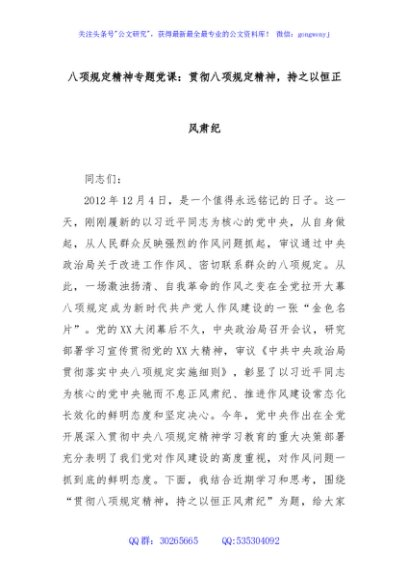 / 八项规定精神专题党课:贯彻八项规定精神,持之以恒正风肃纪