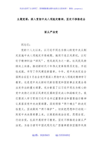 / 主题党课:深入贯彻中央八项规定精神,坚定不移推进全面从严治党