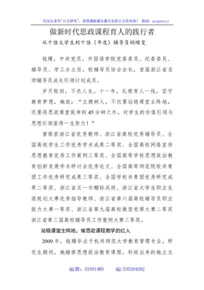 / 辅导员先进事迹:做新时代思政课程育人的践行者