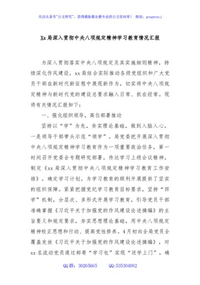 Xx局深入贯彻中央八项规定精神学习教育情况汇报