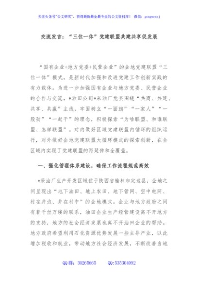 / 交流发言:“三位一体”党建联盟共建共享促发展
