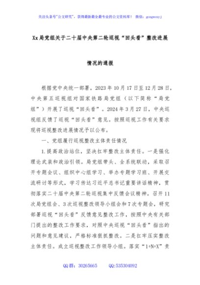 / Xx局党组关于二十届中央第二轮巡视“回头看”整改进展情况的通报