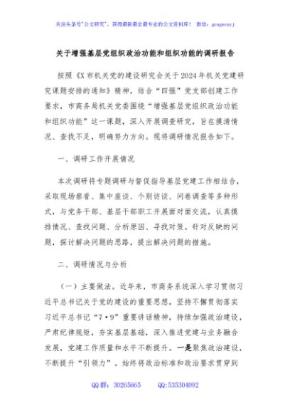 / 关于增强基层党组织政治功能和组织功能的调研报告