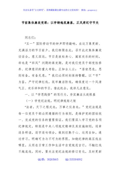 / 节前集体廉政党课:以学铸魂筑廉基,正风肃纪守节关