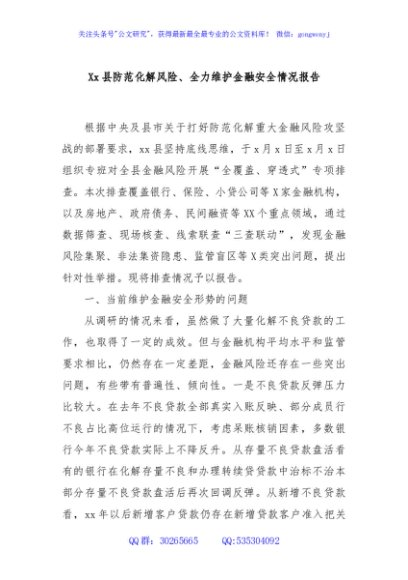 / Xx县防范化解风险、全力维护金融安全情况报告